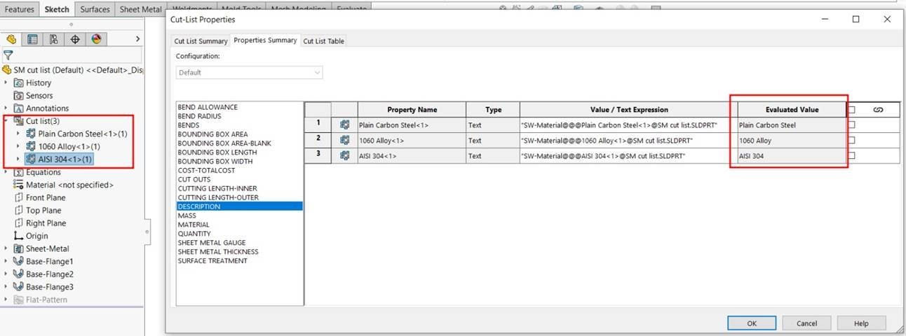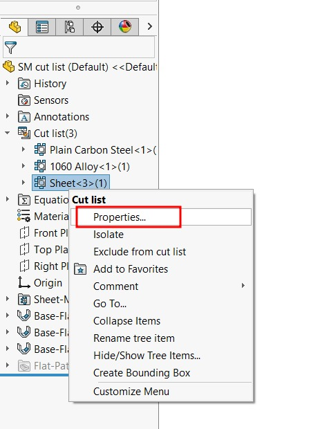 - Open the Cut List Properties window.