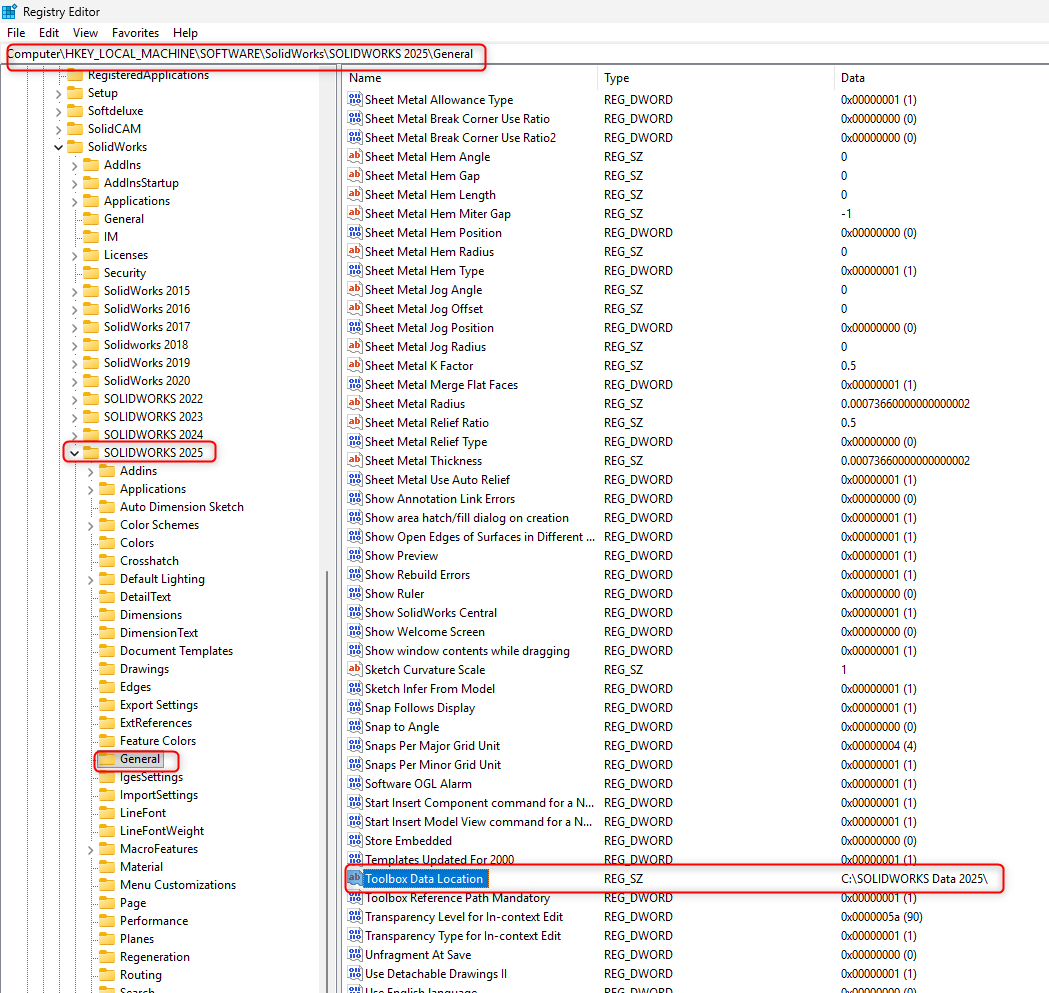 HKEY_LOCAL_MACHINE\SOFTWARE\SolidWorks\<version>\General\Toolbox Data Location -